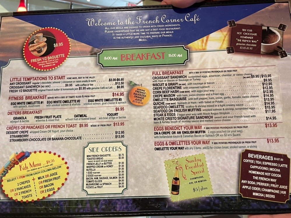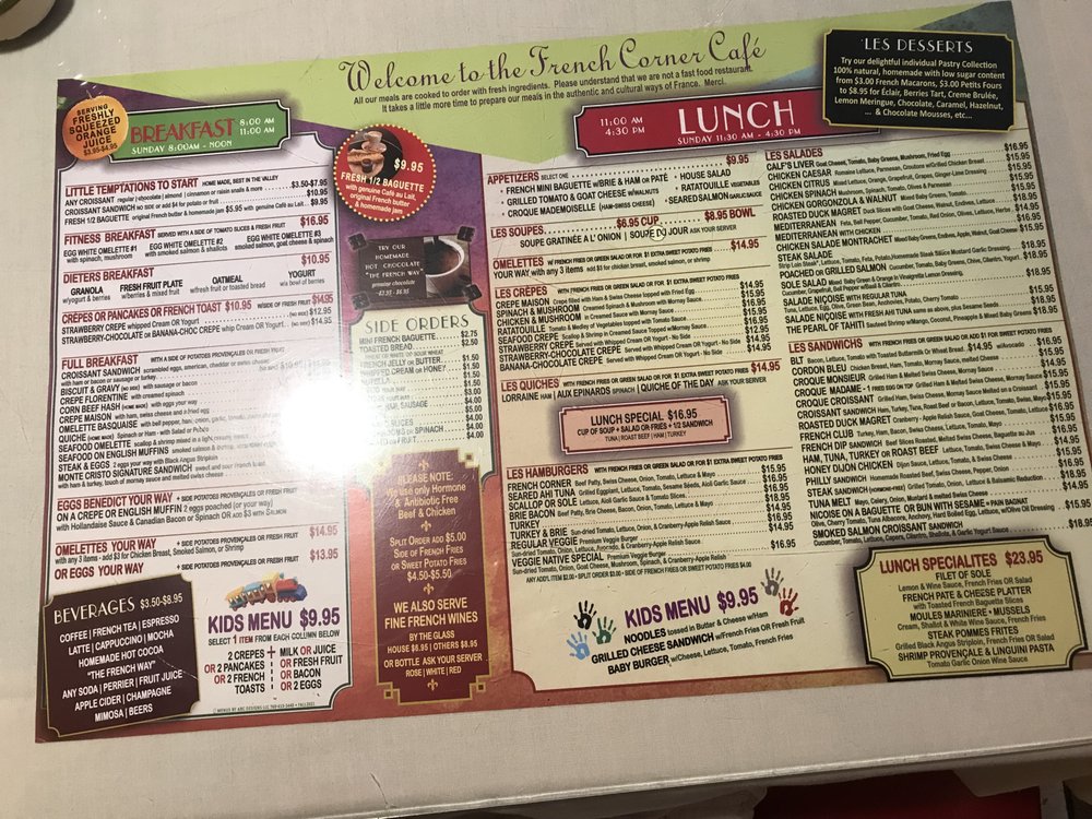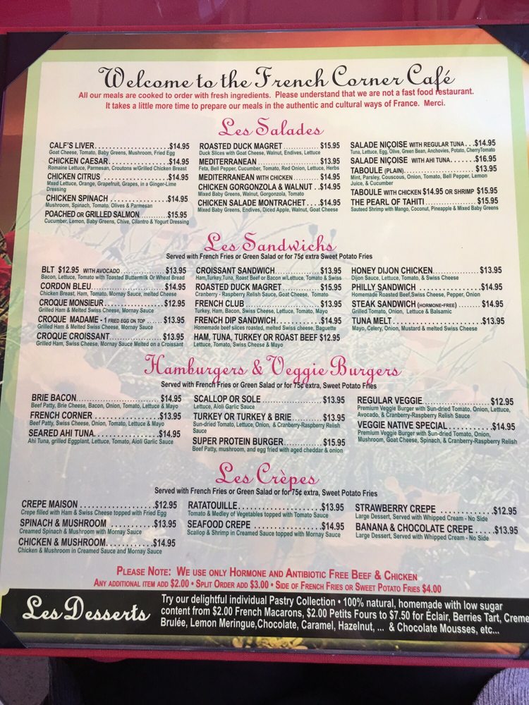French Corner Cafe Menu